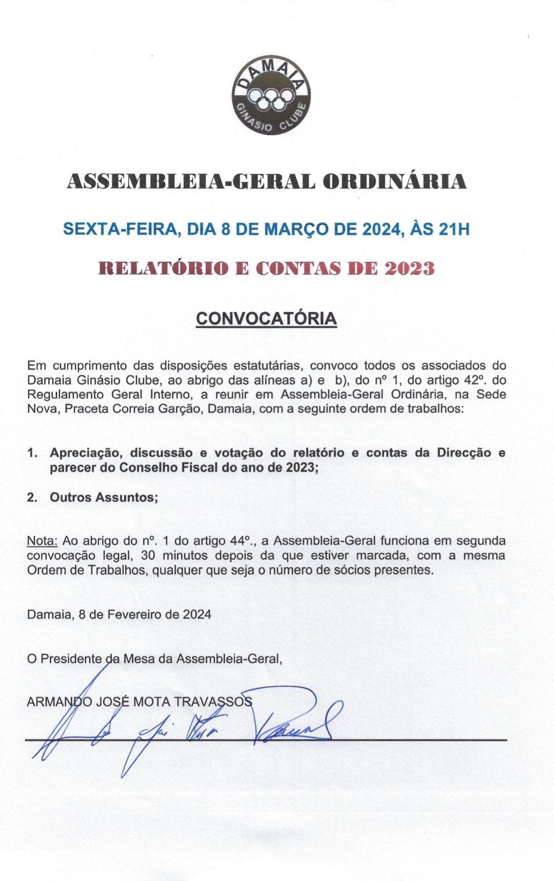 Assembleia Geral Ordinária | 08 de Março de 2024